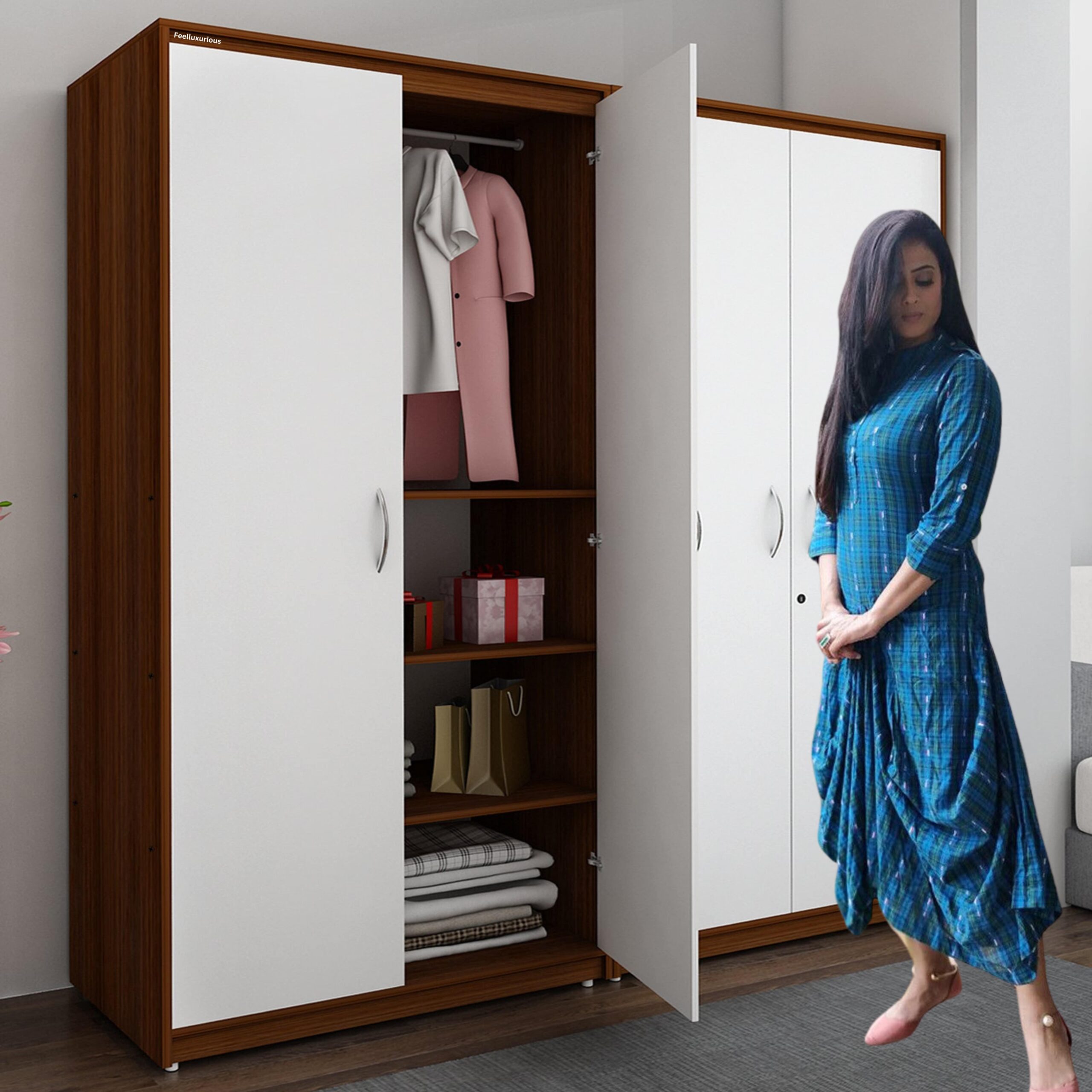 FeelLuxurious.com Deluxe 4-Door Wardrobe with Walnut Wood Finish