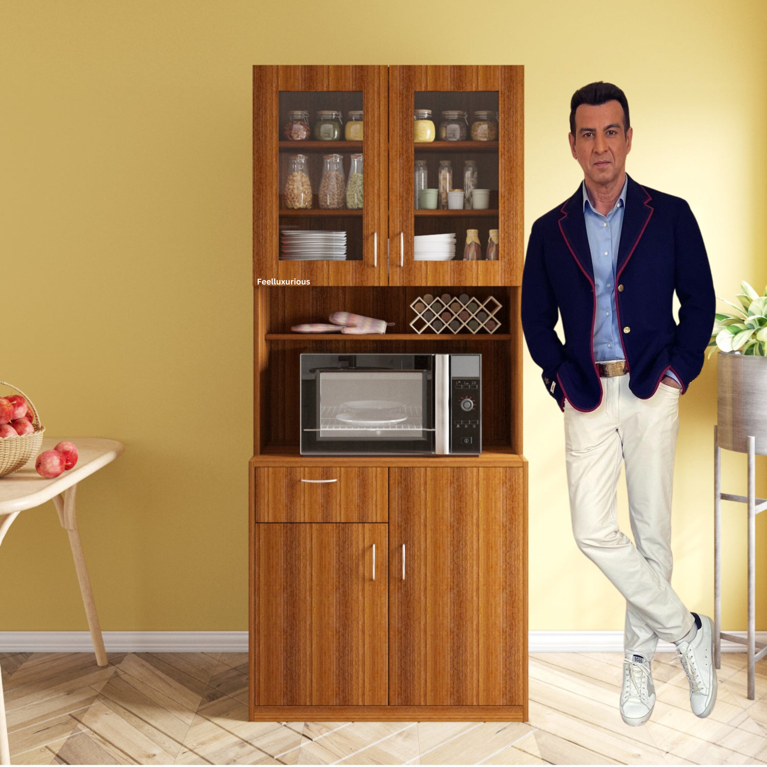 “FeelLuxurious.com Frosty White & Wenge Modern Crockery Cabinet”
