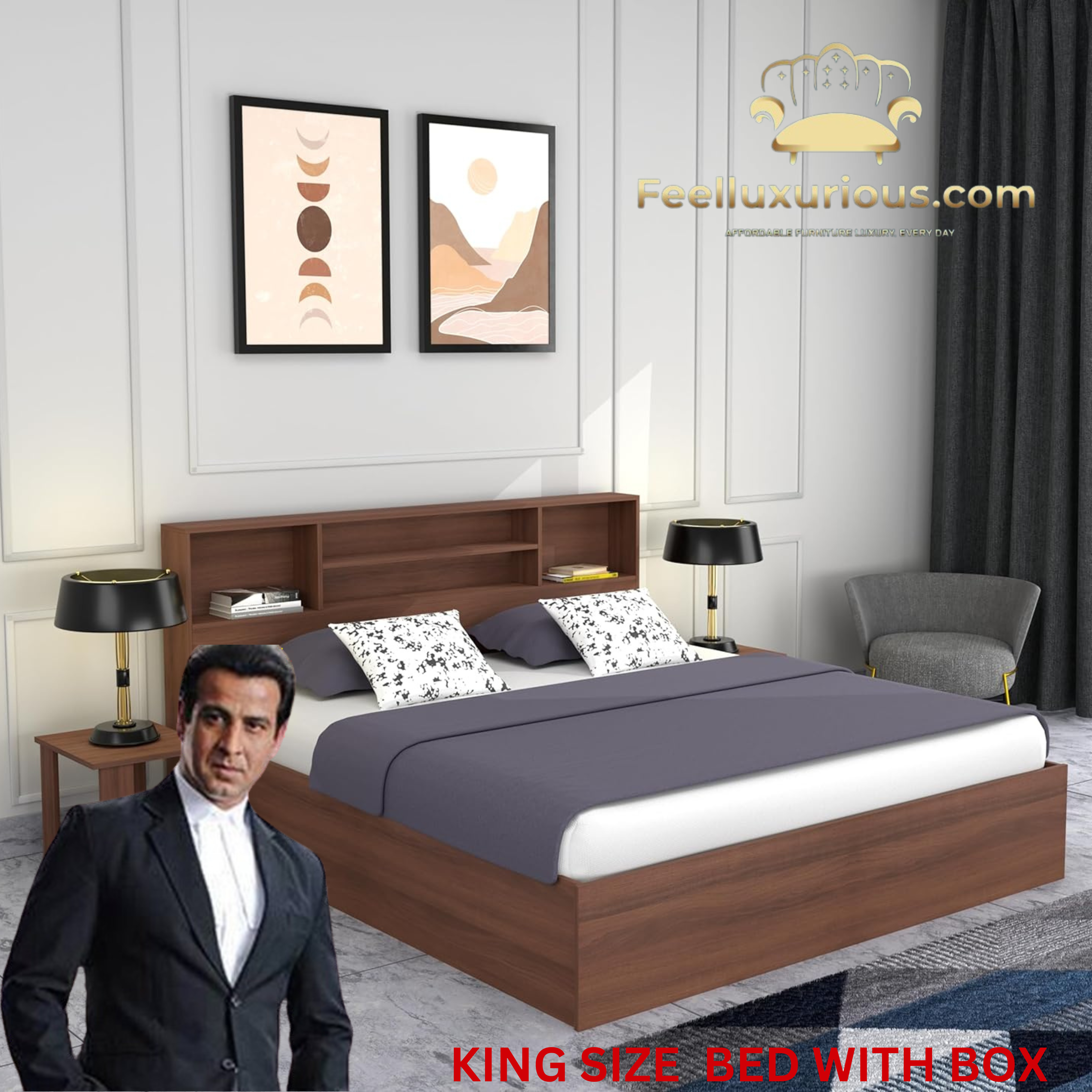 “King Size Engineered Wood Bed with Box Storage from FeelLuxurious.com”