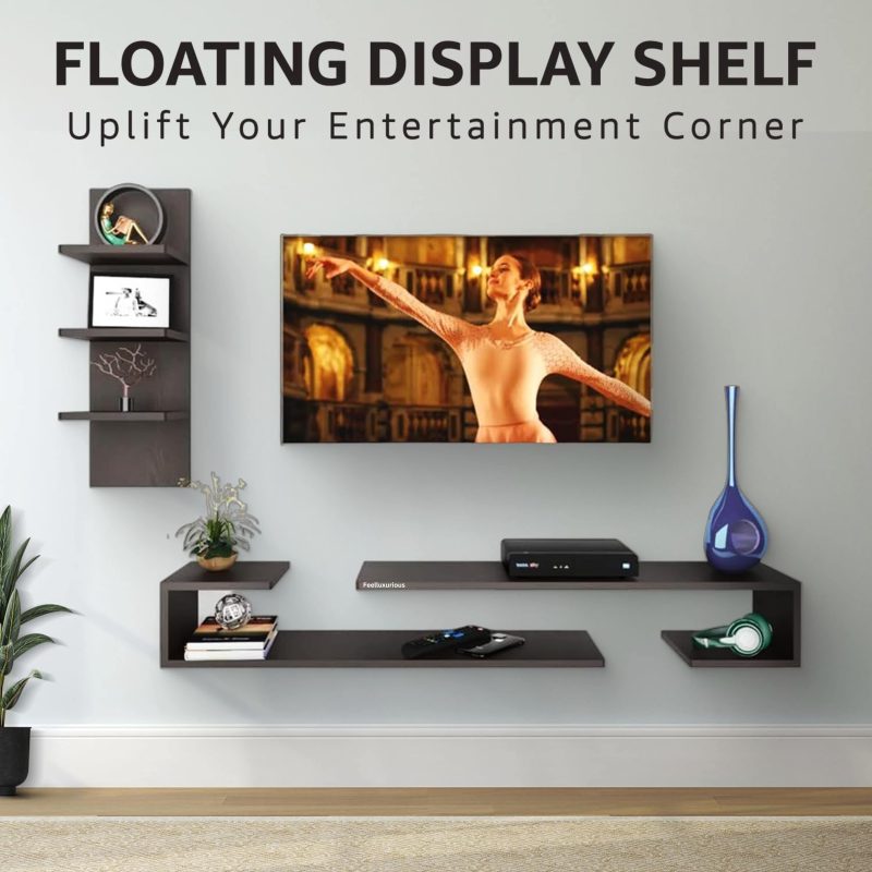 “Feel Luxurious Black Stack Engineered Wood TV Entertainment Wall Unit”