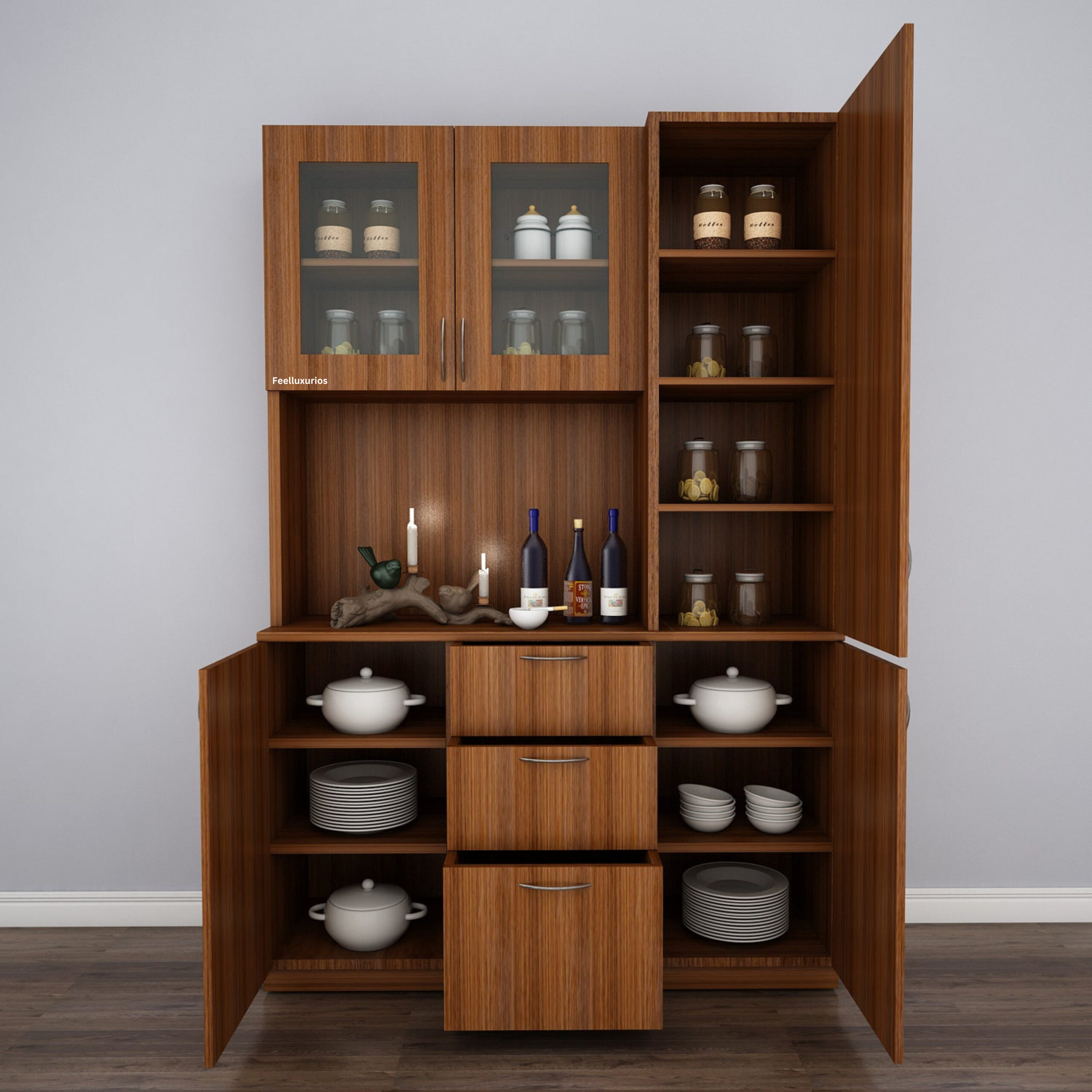 “FeelLuxurious.com Frosty White Wood Finish Modern Crockery Cabinet – Large”