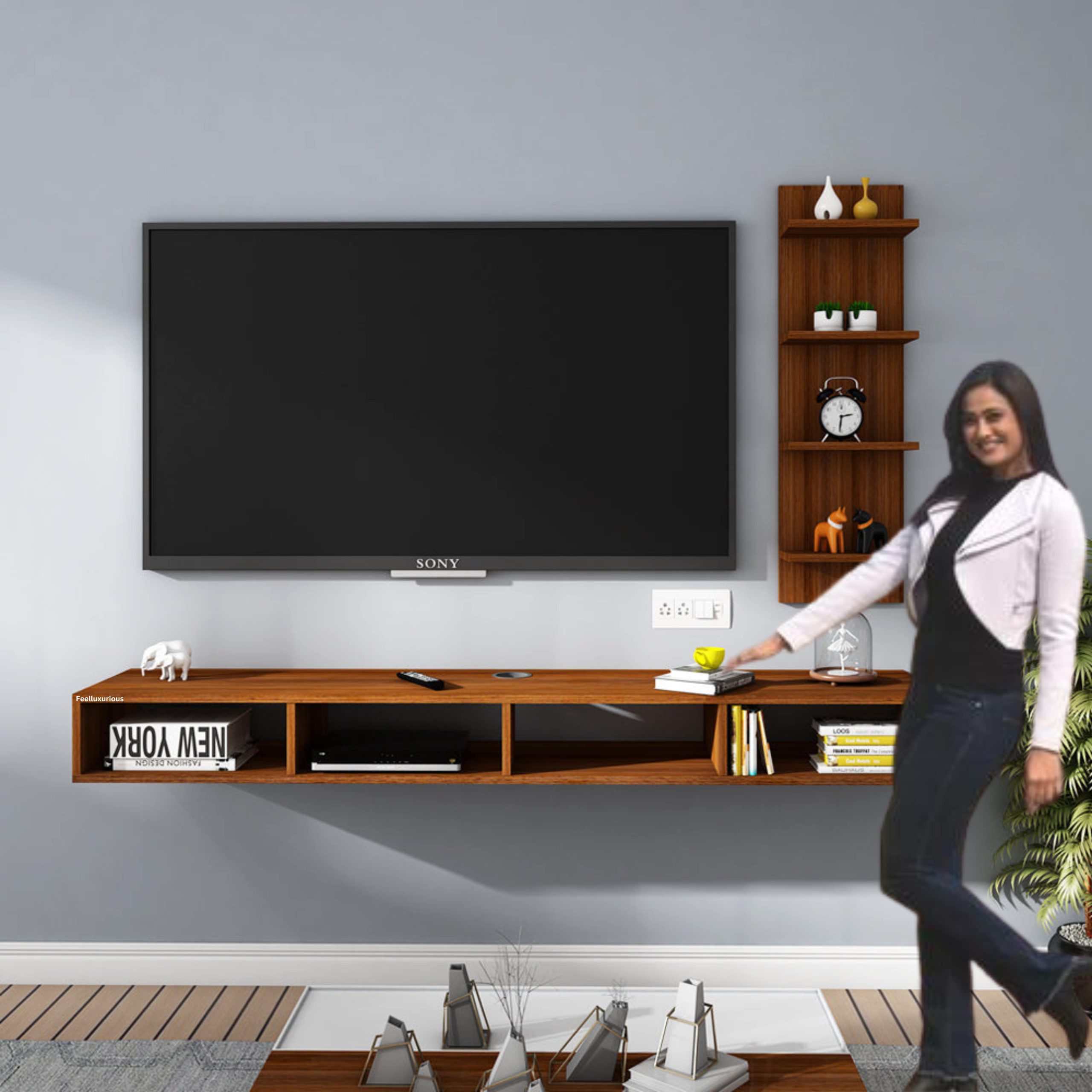 “FeelLuxurious.com Set of 3 Wooden Grain Wall Shelves for Elegant Home Décor”