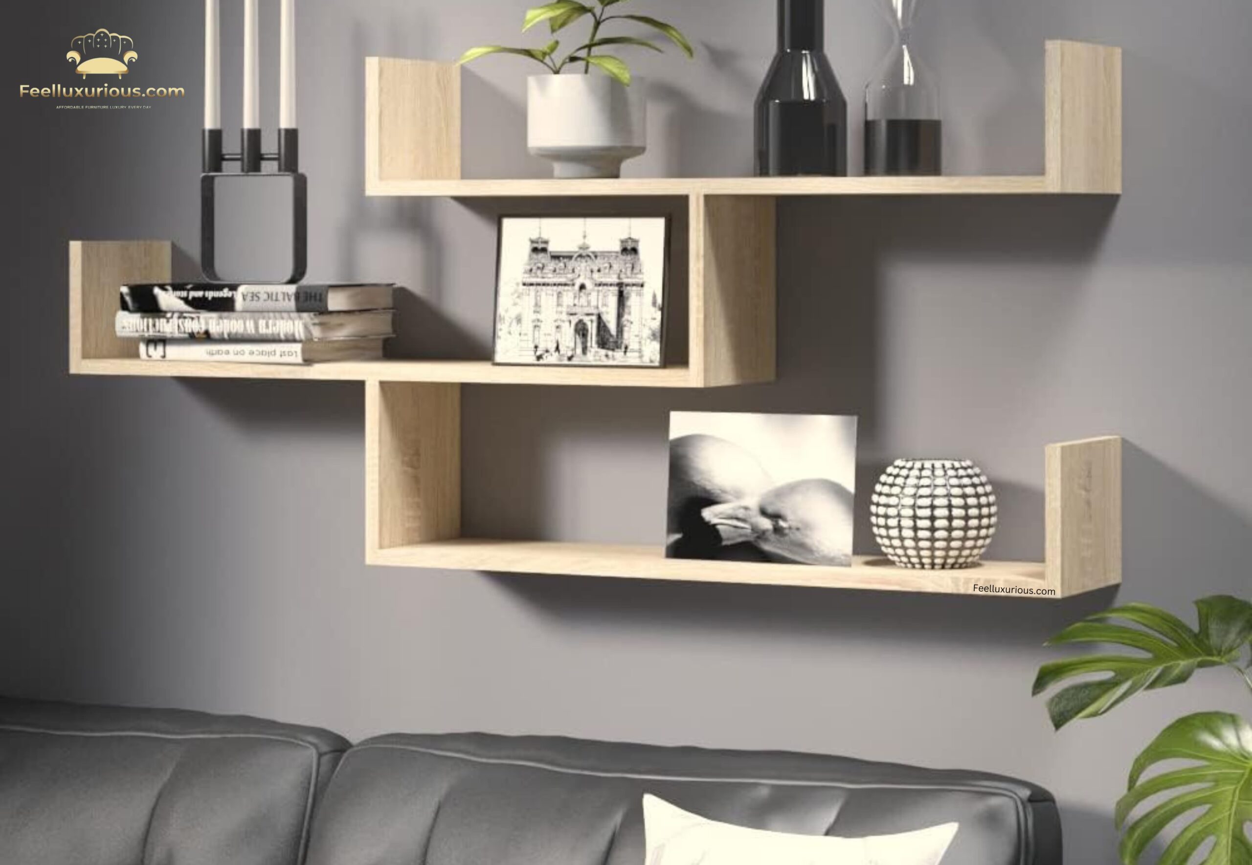 “FeelLuxurious.com Floating Book Rack for Stylish Home Décor”